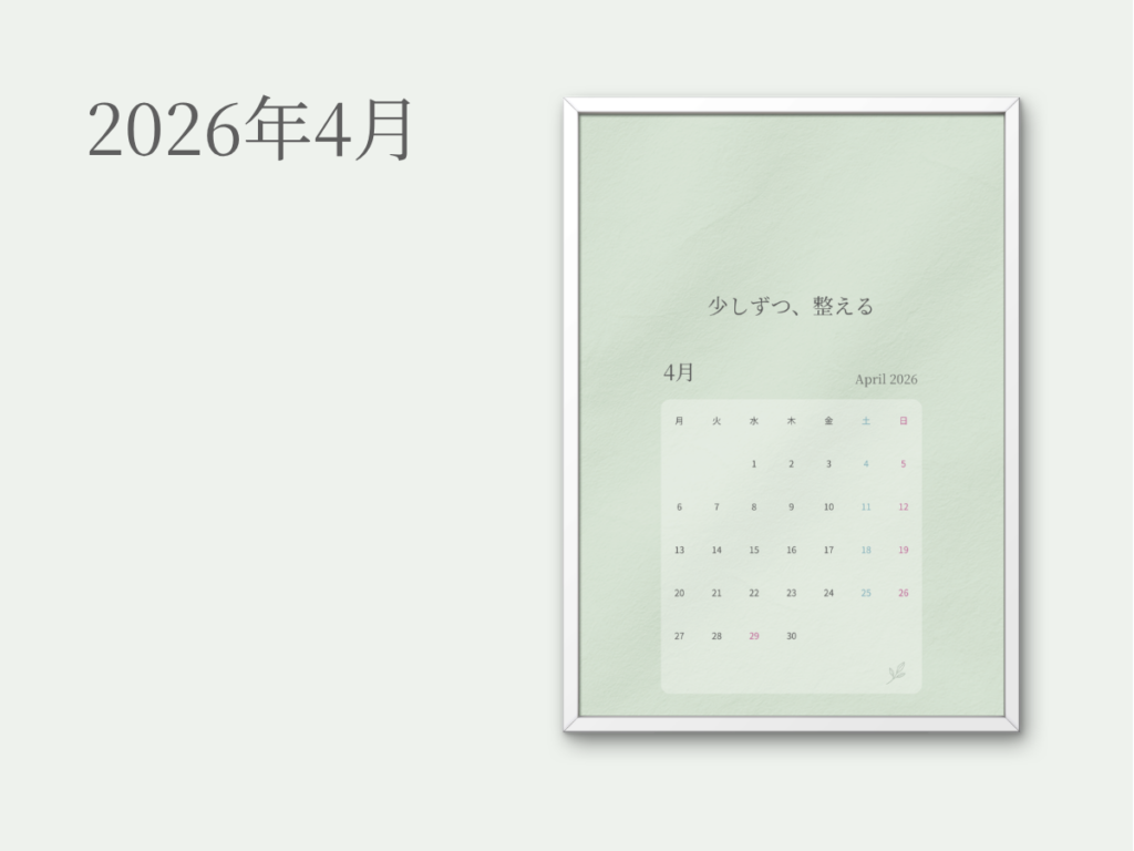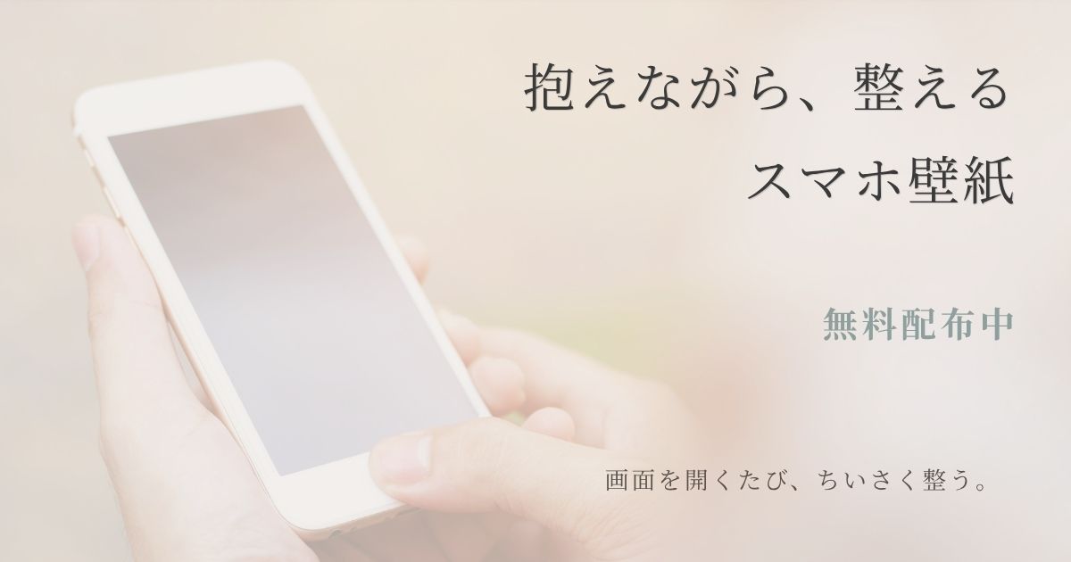 【無料配布】 スマホ壁紙 2026.03.292026.04.01 手帳を開けない日も、画面を開くだけで、整う。 「抱えながら、整える」スマホ壁紙を配布します。 すべてが整っていなくてもいい。抱えながら、今日も整えていける。 そんな気持ちを、画面に。 少しずつ、整える 抱えながら、今日も整えていける